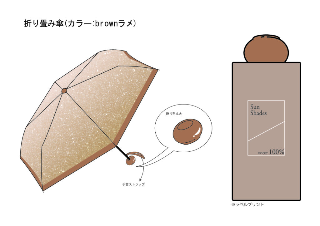 コスメから着想を得て、傘の生地はアイシャドウのブレンディングとラメ感をグラデーションラメで表現し、持ち手は流行りの韓国コスメのコロンとした立体的な形を意識しました。