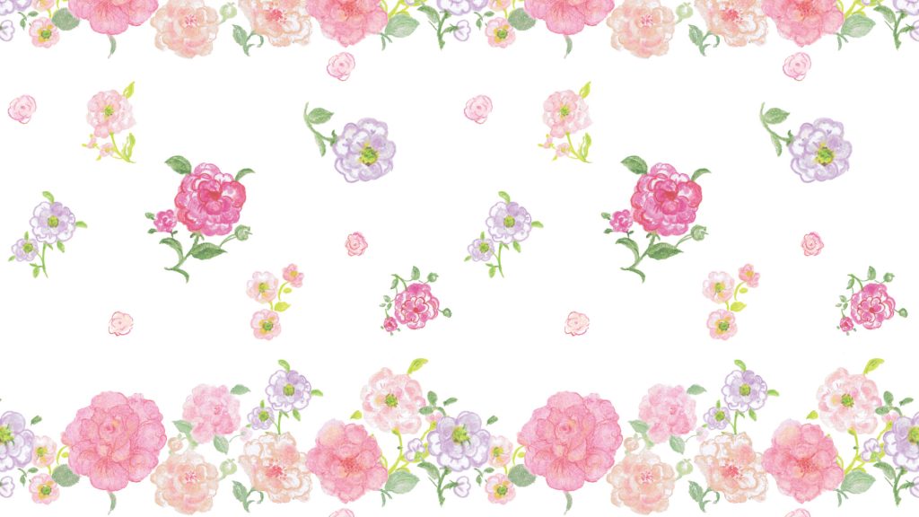 色鉛筆で描いた花を散りばめて、花のボーダーラインを入れて全体の柄を引き締めました。