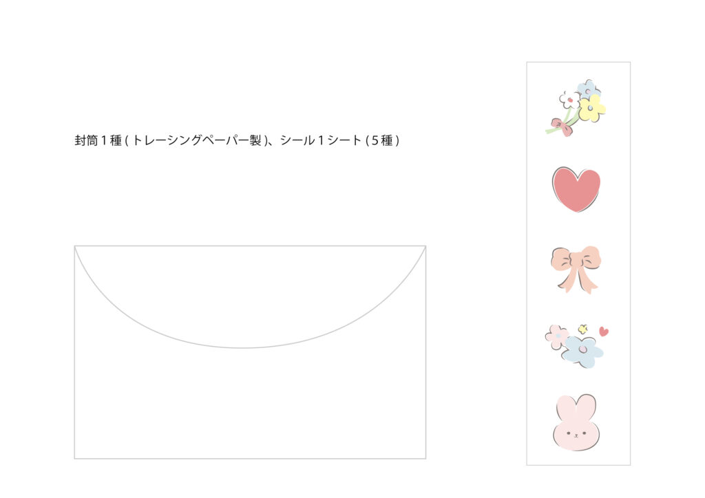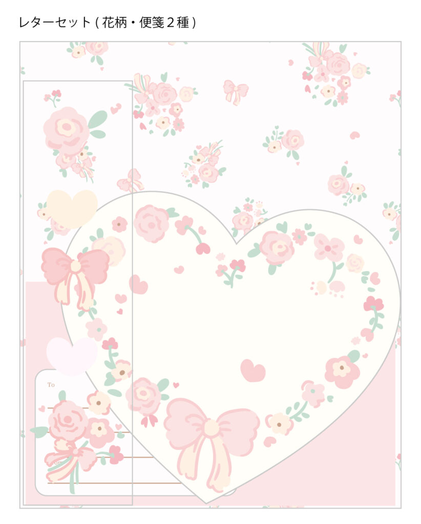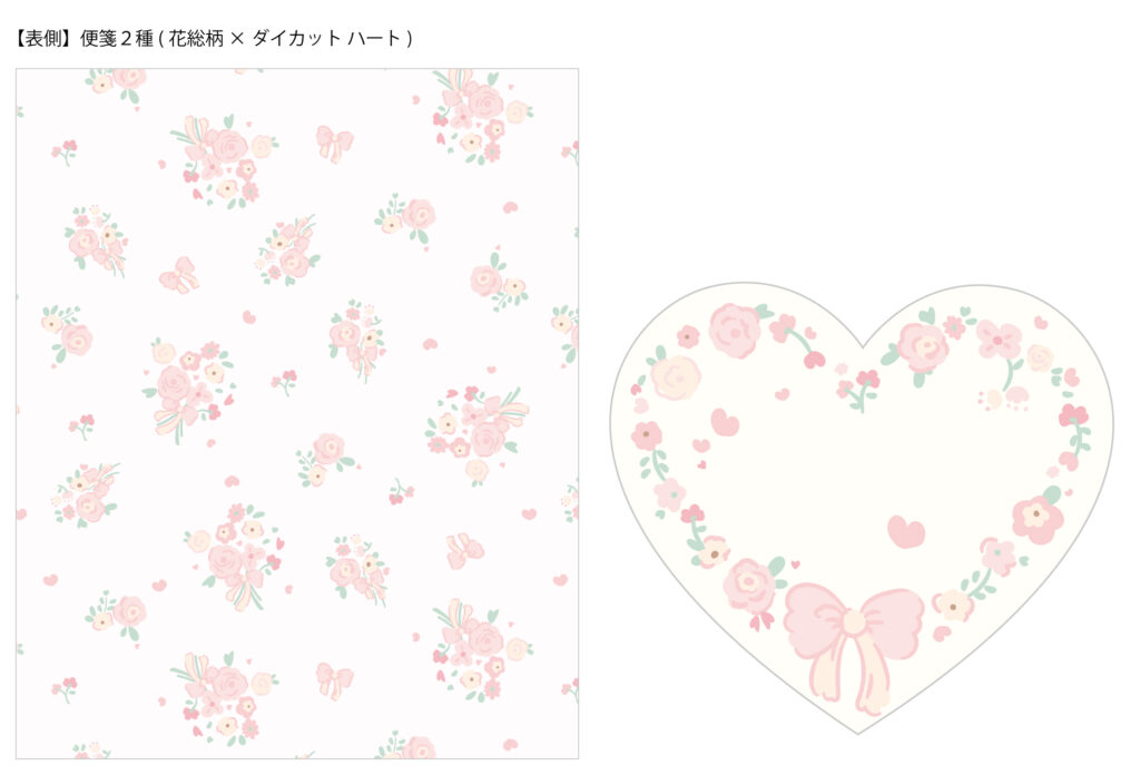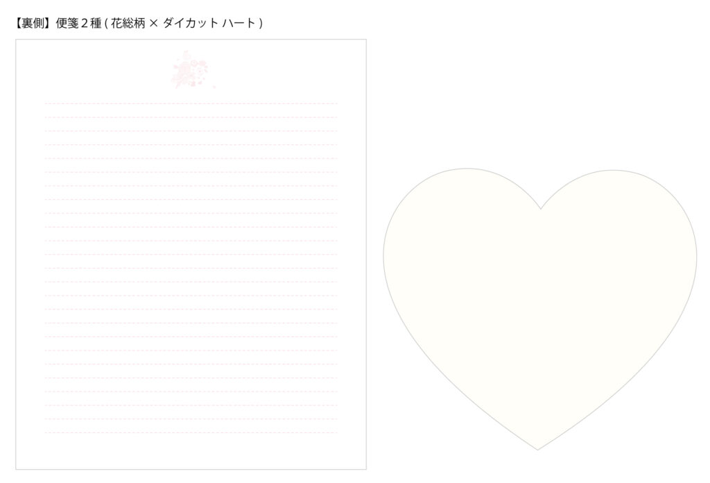 使いやすいスタンダードな便箋と、可愛いハート型の便箋をセットにしました。ハート型の便箋は、メッセージカードのようにも使えたらと思い、デザインしました。